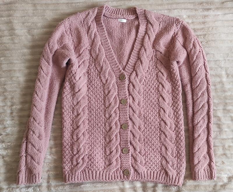 Кардиган бренда Next в пыльно-розовом цвете, подойдёт на размер XS-S. Состояние идеальное, в носке был пару раз. Длина 65 см, ширина плеч 44 см, ПО груди 45 см, длина рукава 58 см