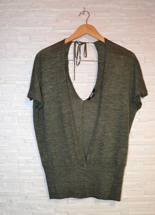 Кардиган Asos меланж хакі. Глибокий V виріз, на спині капля, в низу защіпається маленькими гудзиками. Розмір 12. В дуже хорошому стані без дефектів. Заміри груди 54см(ширина по спині під мишками), низ 39см( вязана резинка добре тягнеться), довжина від леча 67см