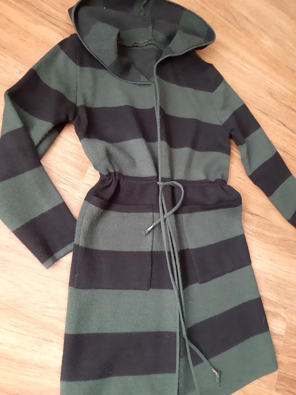 Кофта довга з капюшоном, тканина-вовна, довжина 95 см, тепла, зелено- чорна, йде на розмір 44-46