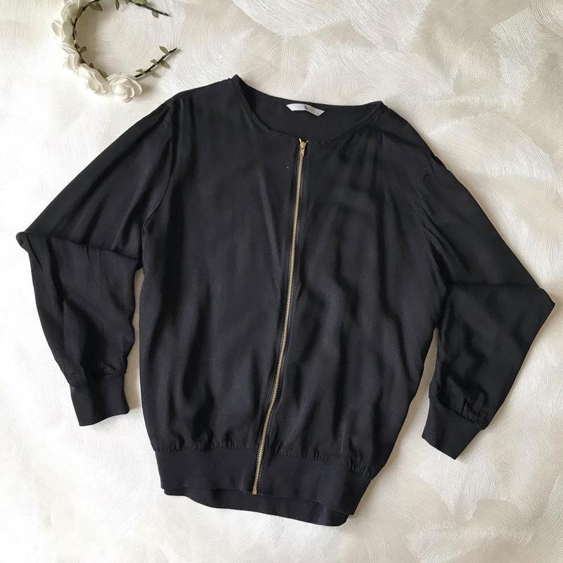 Легкий бомбер TU из вискозы ✔️Должен сидеть свободно, застёгивается на молнию ✔️Размер XL(UK 16), длина - 59 см, ПОГ - 54 см, по низу - 43 см(резинка), длина рукава - 61 см, ширина плеч - 42 см ✔️Состав ткани: 100% вискоза ✔️Состояние идеальное