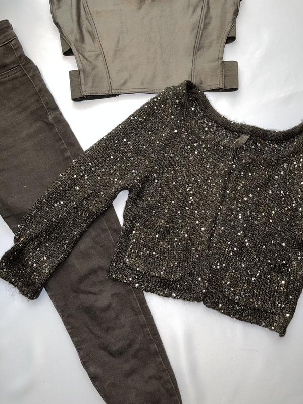 👗чёрный нарядный укороченый кардиган с пайетками Xxs-xs-s ПОГ - 36 см Низ - 36 см Плечи - 30 см Рукав 3/4 - 44 см Длина - 40 см 💰110 грн ⠀ ⠀