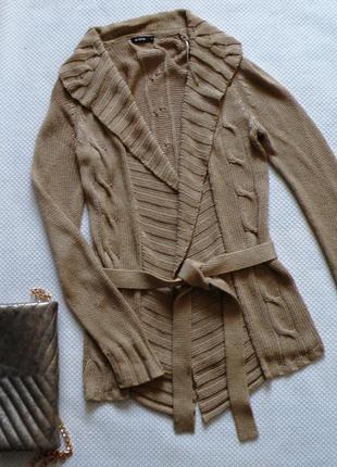 Продаю классный кардиган OSTIN. Размер S Можно носить как с поясом (в комплекте есть), так и без. ЗАМЕРЫ: длина - 88 см., длина рукава (от ворота) - 88 см., ширина по груди линии груди -- 50 см. В идеальном состоянии. Реальный оттенок - золотистый, с глянцем.
