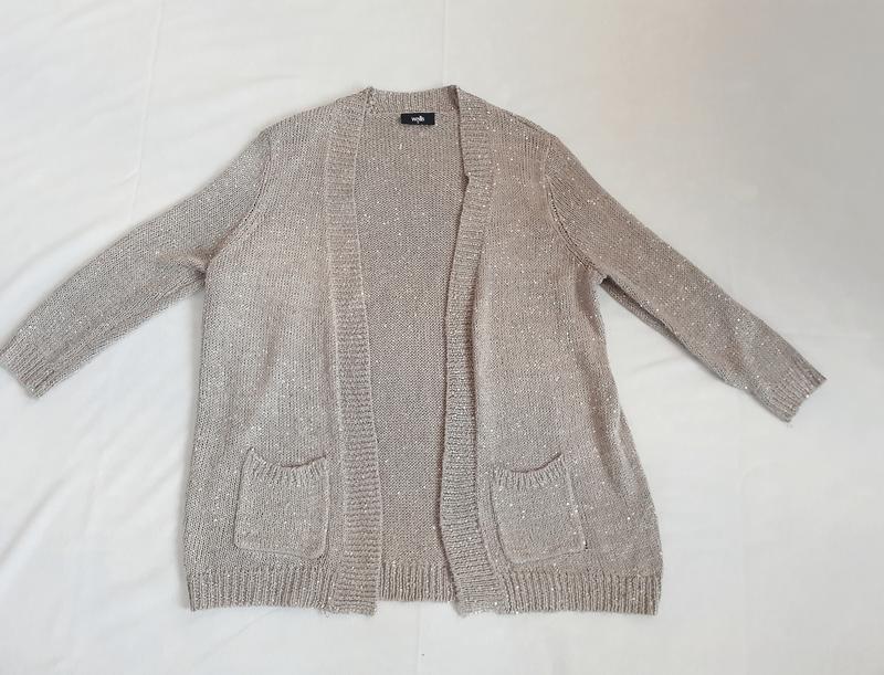Кардиган женский с пайетками, реглан, цвет кофе с молоком; замеры: плечи- 42 см; грудь-48 см; длина- 77 см; длина рукава-52 см