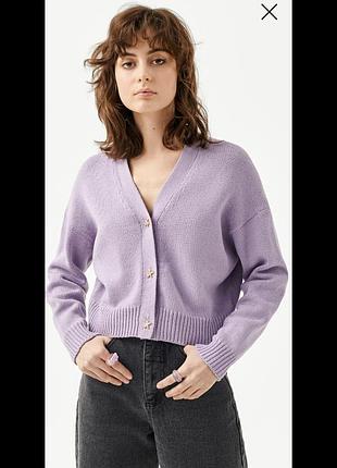Кардиган вязаный с пуговицами звездами.Укороченный хлопковый кардиган фактурной вязки.V-образный вырез на груди.Спущенная линия плеча.Манжеты и нижний край в рубчик.Застежка на золотистые пуговицы в виде морских звёзд.Цвет сиреневый.Состав: 60% хлопок,40% акрил.В наличии размер S/170-88-96.Возможна встреча и примерка в городе Киев.Отправка Новой и Укр.почтой,по предоплате на карту.С другими почтовыми отделениями не работаю. Артикул: 2211350840
