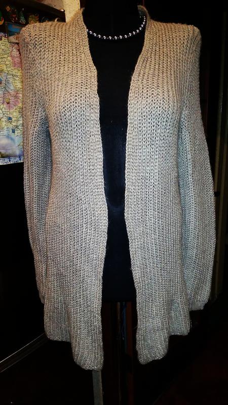Кардиган 44р.св.серый в очень хорошем состоянии,слегка пушистый,мягенький и тёпленький,16% шерсть6% мохер.ПОГ 42-50,длина 73,плечи 39,рукав 69.Манекен 46р.