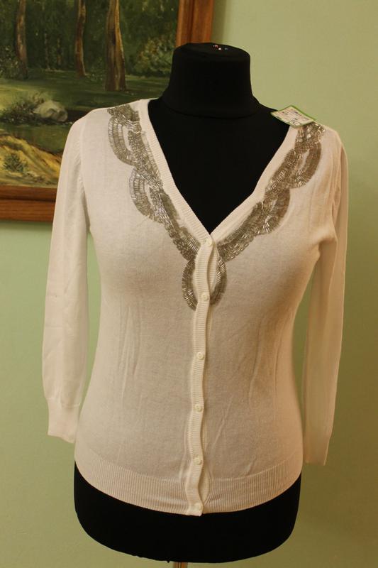 Нова нарядна біла кофточка, прислана з Європи, рзмір ХЛ вказано.Довина-58см, рукав -54см від плеча, від підмишки до підмишки-51см.