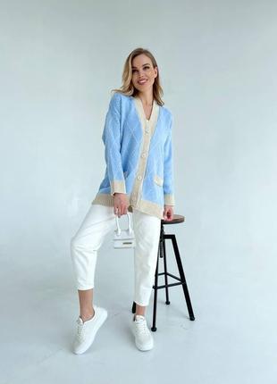Стильный, но сдержанный кардиган на пуговицах жаккардовой в щи ▪️Арт. KULYA ▪️Состав: 30% Шерсть, 70% акрил ▪️Цвета: Голубой-бежевый Оливка-бежевый Разовый-серый Молочный-черный ▪️Размер : 42-46