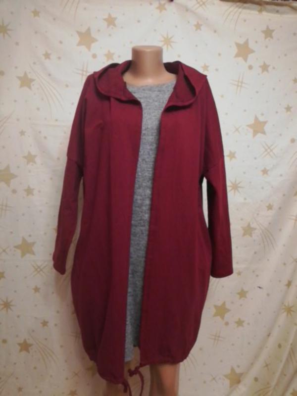 Красивый длинный трикотажный кардиган с надписью на спине. Имеет по бокам 2 глубоких кармана. Состояние идеальное! ПоГ(меряла по спинке) 67см Длина 90см Рукава от горловины 69см Состав 95%хлопок, 5% эластан