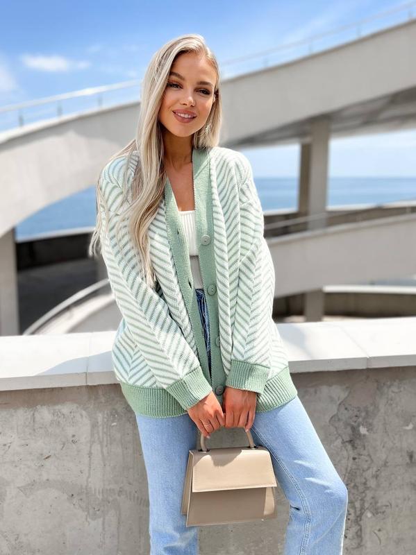 Вязаный кардиган на пуговках с узором ▪️Арт. Nataly ▪️Состав: 70% акрил 30% Шерсть ▪️Цвета: Кэмэл-чёрный Бежевый-чёрный Голубой-бежевый Оливковый-молочный Пудра-молочный Чёрный-молочный ▪️Размер : 42-46 лари