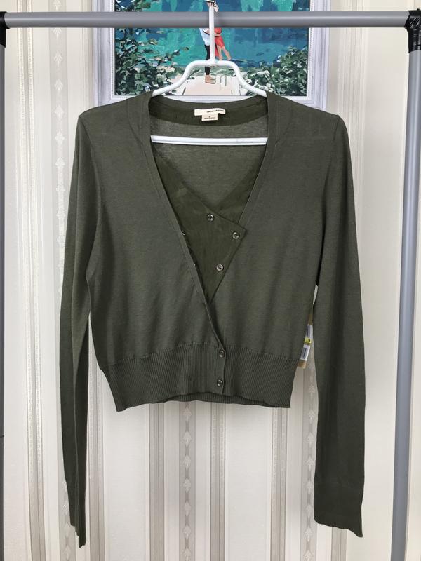Зелений кардиган Dkny Jeans 🔅 Зелений колір, шовкова вставка, на ґудзиках, рукава та низ виробу на манжетах, бавовна з шовком, ґудзики прописані назвою бренду, біля верхньої бірки шовкова вставка для максимально приємного ефекту ▪️Стан: Новий, з біркою ▫️Деталі: Розмір : М Склад: 90% бавовна, 10% шовк/ вставки - 100% шовк Заміри: ➖Плечі: 41 см ➖Півобхват грудей: 46 см ➖Довжина: 50 см ➖Довжина рукава від плеча : 67 см ➖Ширина внизу: 36 см в спокійному стані ▪️Колір зелений ▫️Сезон цілий рік