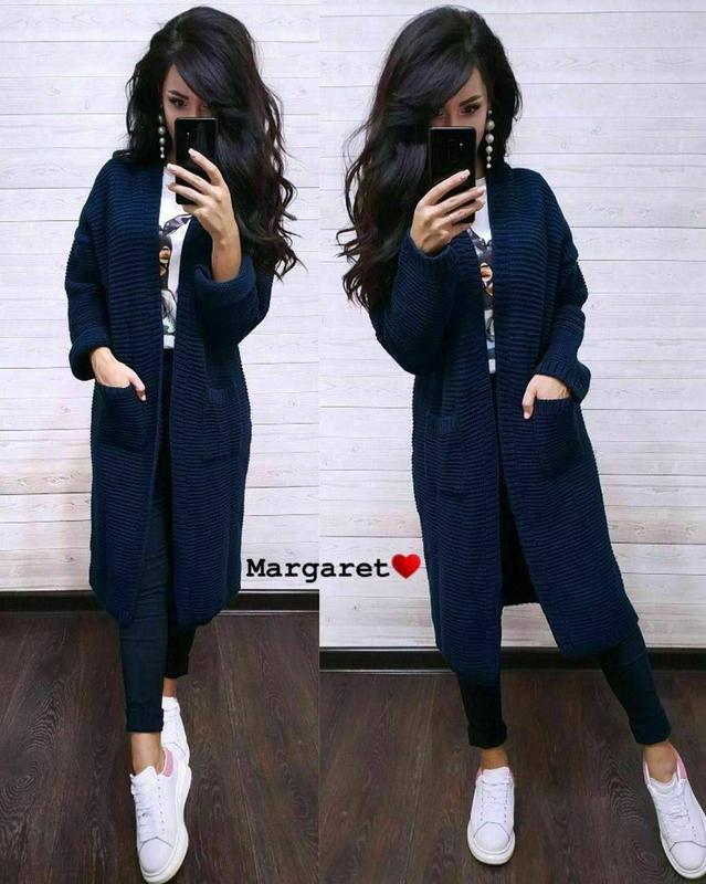 Кардиган Маргарет Машинная вязка 50% шерсть, 50% акрил Длина 110 см Размер единый 42-46 Цвет голубой, пудра, темно-синий
