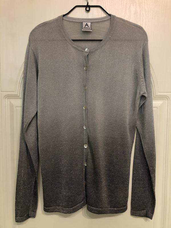 Фото не передаёт красоту расцветки. Чудесный переход от светло до темно серебряного. Изделие отлично держит форму, красиво ложиться по фигуре. Пуговицы из натурального материала. Полуобхват груди 50 см, длина 62 см , полуобхват бёдер 50 см.