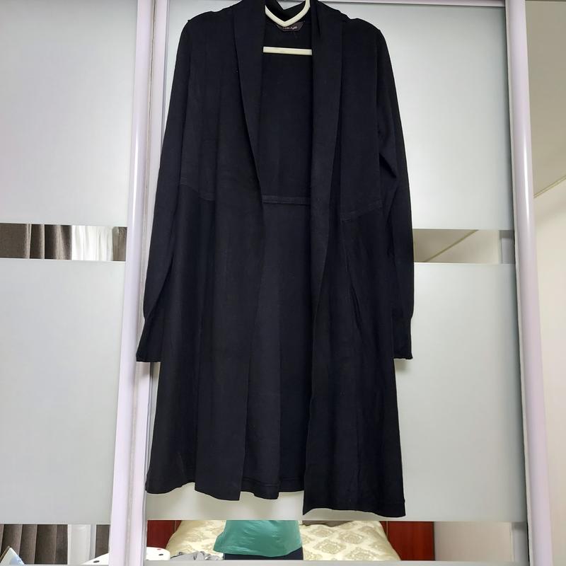 Стильная, удлиненная кофта .Трикотаж мягкий и очень приятный на ощупь. Не застегивается, карманов нет. Длина-90см., рукав-64см., плечи-36.5см. ПОГ-38см.