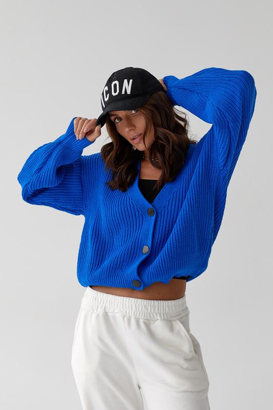 красенем Вкорочений в’язаний кардиган на ґудзиках - 890 грн Якість просто 🔥 А цей океанський синій колір просто любов 💙 у самісіньке серденько Доступний у розмірах S M L і різних кольорах: синій, білий, молочний, чорний, рожевий і зелений ☝🏻 Очікувати 3-4 дні