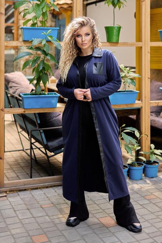 Кардиган Модель :816 Цена: 845 грн Размер:48-50,52-54,56-58,60-62 Ткань: двухнить+ЭКО кожа Цвет: черный, синий