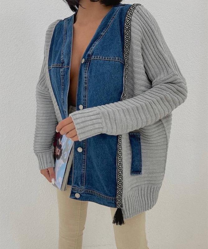 🍁🍂Осінні новинки 🍁🍂 Ультрамодні кардигани комбіновані з денімом, дуже красиві, стильні 😇 🔸Висока фабрична якість 🔸Туреччина 😍 🔸Кольори: сірий і беж 🔸Розмір єдиний 🔸Довжина 65 см, ширина 73-75 см 🔸Рукав від горловини 72 ▪️Есть наложка с предоплатой в 200 грн ✔️ Отправка новой почтой по всей Украине ✔️ 100% предоплата на карту приват банка МНОГО НОВИНОК в моем интернет магазине на СТРАНИЦЕ ПО ОЧЕНЬ ДОСТУПНОЙ ЦЕНЕ🔥💣 {одежды, купальники} переходи и УБЕДИСЬ В ЭТОМ САМ 🥰🌹