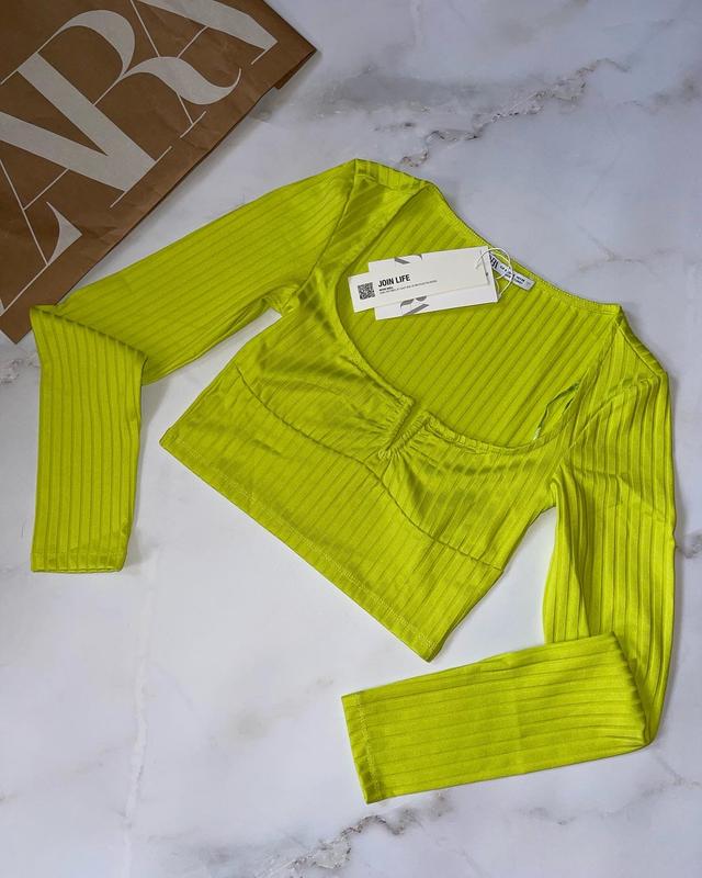 Яскравий трикотажний топ #zara На грудях V металевий виріз Добре тягнеться В наявності розмір: • S Підійде також і на М