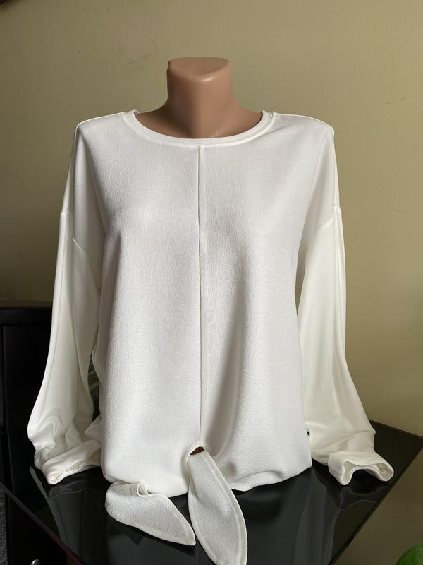 Крута, шикарна кофточка, низ на зав'язках. Вільного крою, плечі приспущене. Від Opus. Розмір вказаний S, як на мене добре буде на М - Л. 🌱Легенька, приємна до тіла. Складається з двох тканин: перед поліестер, зад і рукави - віскоза, модал, еластан. Стан нової. 📌Заміри: Довжина від плеча 57 см ПОГ 55 см Довжина рукава від ворота 66 см