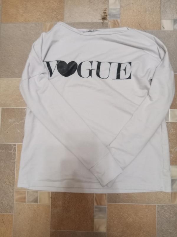 Белая кофта с надписью Vogue, дефект на 2 фото ПОГ-45 ПОТ-45 Низ-48 Плечи-51 Рукава-40 Длина-53