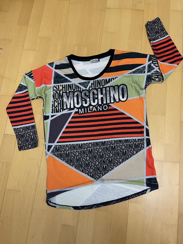 Лонгслив, Італія, бренд Moschino. Розмір М, більшомірить, на L. ПОГ 55 см, довжина 66 см попереду, 75 см спинка, рукав від горловини 64 см. Дефектів немає, стан ідеальний. Еластична, легко тягнеться.