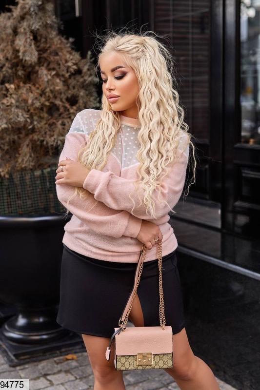 Ніжна блуза з сіточкою🌸 • тканина - ангора рубчик • розміри 46-48,50-52, 54-56 • кольори - пудра, лаванда, чорний, оливка