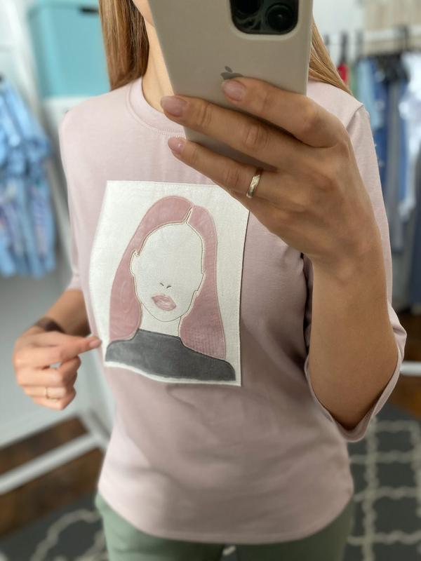 Лонгслив пудрового цвета, рукав 3/4, нашивка велюр. Очень качественный лонгслив украинского бренда verena design. Футболка с удлиненным рукавом Принт: аппликация плюс вышивка Размер XS: Ширина от проймы до проймы по линии груди 47 см Ширина по линии низа 49 см Длина рукава от плечевого шва вниз 39,5 см Ширина рукава внизу 14,5 см Футболка достаточно свободная с умеренным оверсайз.