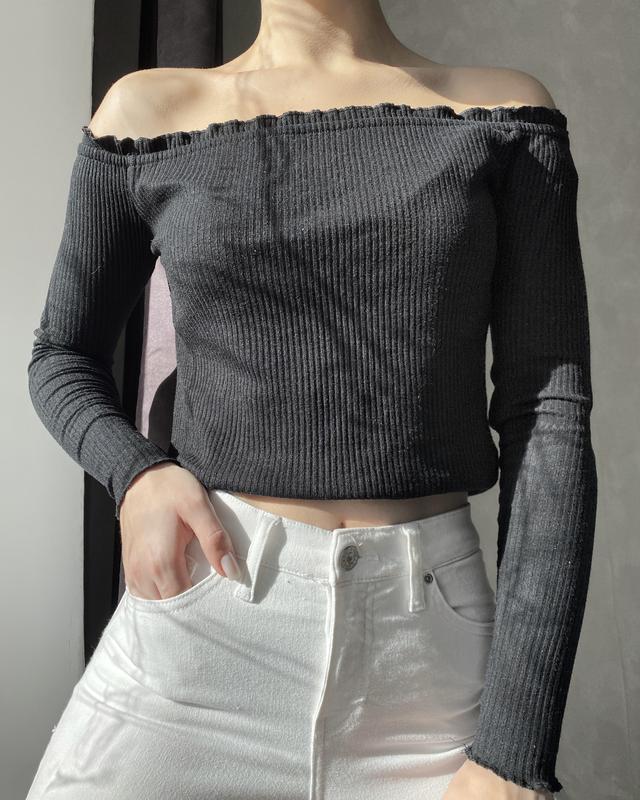 Топ - кофта зі спущеними плечима на резинці, чорного кольору. Розмір : 36 Стан : ідеальний