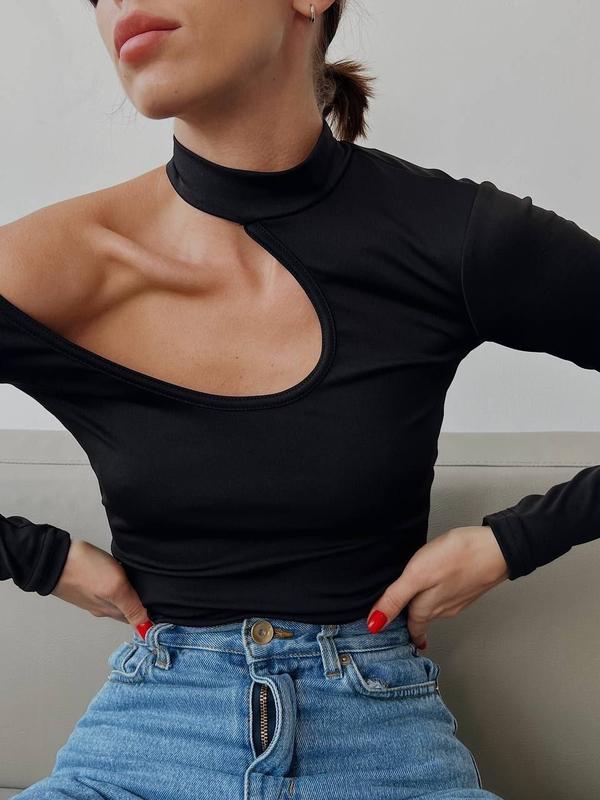 📸ФОТО РЕАЛ🔥 🔶Лонгслів🔶 ▪️Тканина: мікродайвінг ▪️Розмір: 42-44 та 44-46 ▪️Колір : чорний та білий Ціна: 449 грн 💬Хіт сезону💔 Супер стильний, обтягуючий лонгслів з трендовим декоративним вирізом та вшитим чокером🔥 Приємна до тіла, м‘яка тканина. Чокер застібається на кнопочку. 📌ЗАМІРИ ВИРОБУ (добре тягнеться): 42-44 / 44-46 ОГ 84-90 см / 90-96 см ОТ 62-68 см / 68-76 см Рукав 72 см / 72 см Довжина 52 см