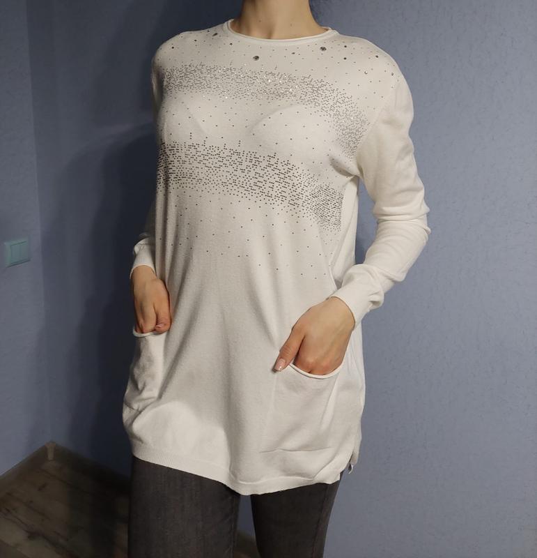 ✅Стильная кофточка с дизайном из страз и двумя карманами. ✅Размер: 52, 54. ✅Ткань: кашемир.