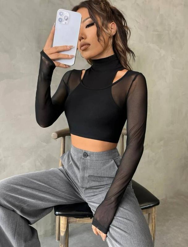🇺🇦НОВИНКА🇺🇦 Топ♥️ ▪Код товару: 600 ▪500 грн 🔥 ▪Ткань: микродайвинг+сетка ▪Размеры: S-L(Универсал) ▪Цвета: черный, белый 📌Необычный топ с рукавами из сетки, мягкая ткань, хорошо тянется🔝