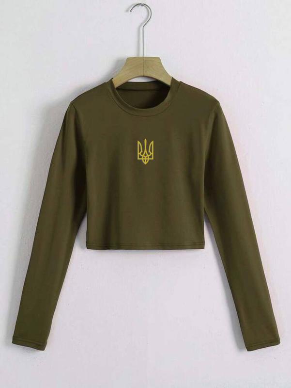НОВИНКА🇺🇦 🔸Топ «Тризуб» ▪️Модель: 1411 ▪️Тканина: мікродайвінг ▪️Розмір: 42-46 (onesize) ▪️Колір : хакі, беж, графіт Супер якість за низькою ціною🔥 💬 Базовий обтягуючий топ з патріотичною символікою у вигляді «Золотого Тризуба»🔱💪🏻 ❤️ Якісна накатка. ПАРАМЕТРИ (добре тягнеться): Довжина 40 см ОГ 84-94 см