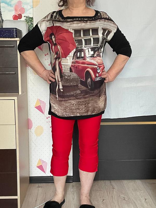 Кофта хорошо тянется, плечи занижены, спина и рукава сделаны из вискозы, по переду полиэстер, бирок не имеет, но подойдет на 52/56 размер. Замеры: под руками 62+10 длина 70 по низу 52+20 рукава от горловины 52 При покупке 2 и больше вещей предоставляется ломтика.