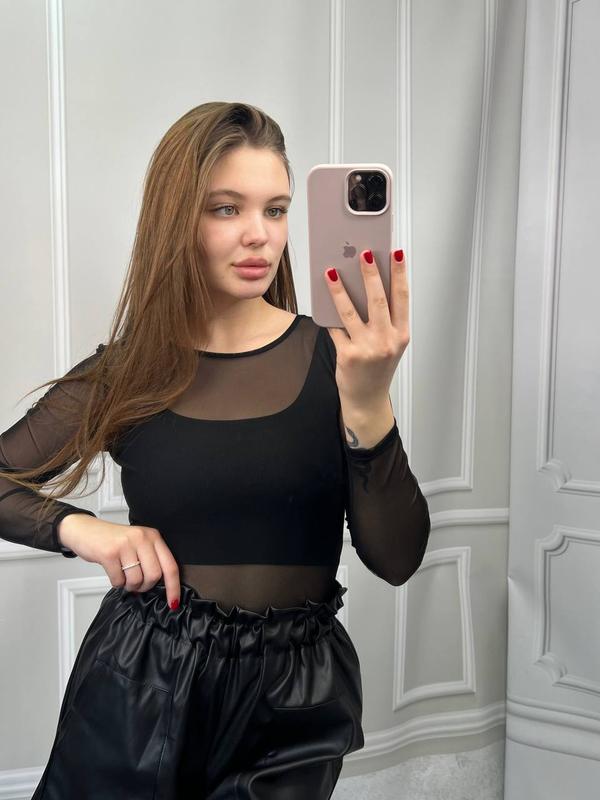 Женская кофта в сеточку🔥 Кофточка с длинными рукавами - отличный выбор для девушек, которые ценят оригинальность и стиль в одежде. ✔️Цвет: черный ✔️Код 114/23 ✔️Размеры: S, M, L, ✔️Вкладыш: женские футболки 💵Цена : 750 грн На модели размер М