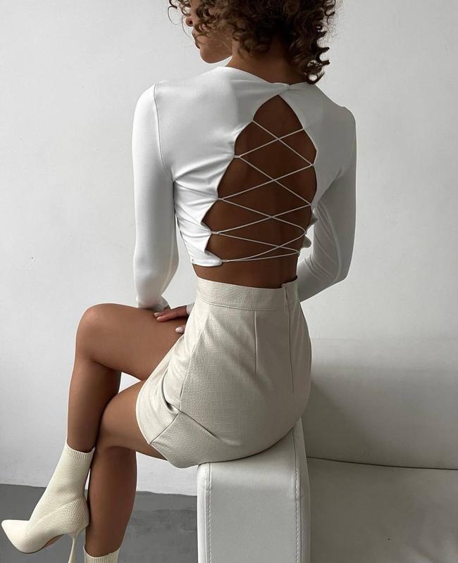 Арт 4942-219 Топ із шнуровкою ▪️Розмір-42-46 ▪️Тканина - мікродайвінг ▪️Колір - чорний, білий ▪Ціна 440 грн Не стандартний топ 😍 Тканина добре тягнеться, шнуровка також еластична, розтягується добре. Дуже гарно підкреслює фігуру