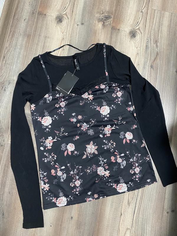 Новый лонгслив обманка 2в1, рукава и верх сетка. Размер xs, подойдет на s.