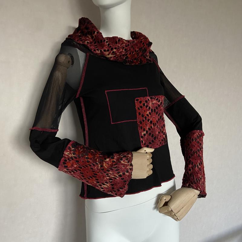 Размер: S/M (ткань хорошо тянется) Длина (от верхнего шова): 45 см Рукав (от шеи): 61 см Рукав (от подмышки): 45 см Расстояние между подмышками: 44 см Стан: 10/10