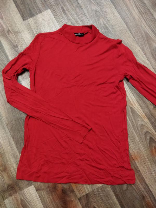 Очень тоненький и мягкий лонгслив, торговой марки ZARA. Без признаков ношения. Цвет ярко-красный. Не очень хорошо тянется. плечи - 34см, Пог - 40см, Длина - 60см, рукав - 64см.