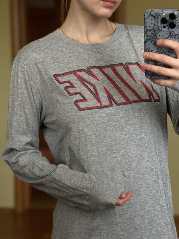 Лонгслив Nike серого цвета. Лого прорезиненный. Размер мужской M, на фото одето на женский S. Нужны замеры или больше фото? Пишите в личные сообщения ☺️