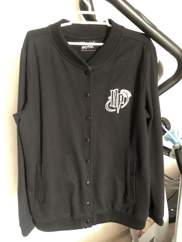 Кофта на кнопках, бомбер «Harry Potter» Lumos. Цвет черный, на флисе. Замеры: длина рукава-63, плечи-42, ширина подмышками-51, низ-48, длина по спине от воротника-67. Размер по набору XL, но по факту на S (оверсайз), или М. Состояние идеал, не ношен