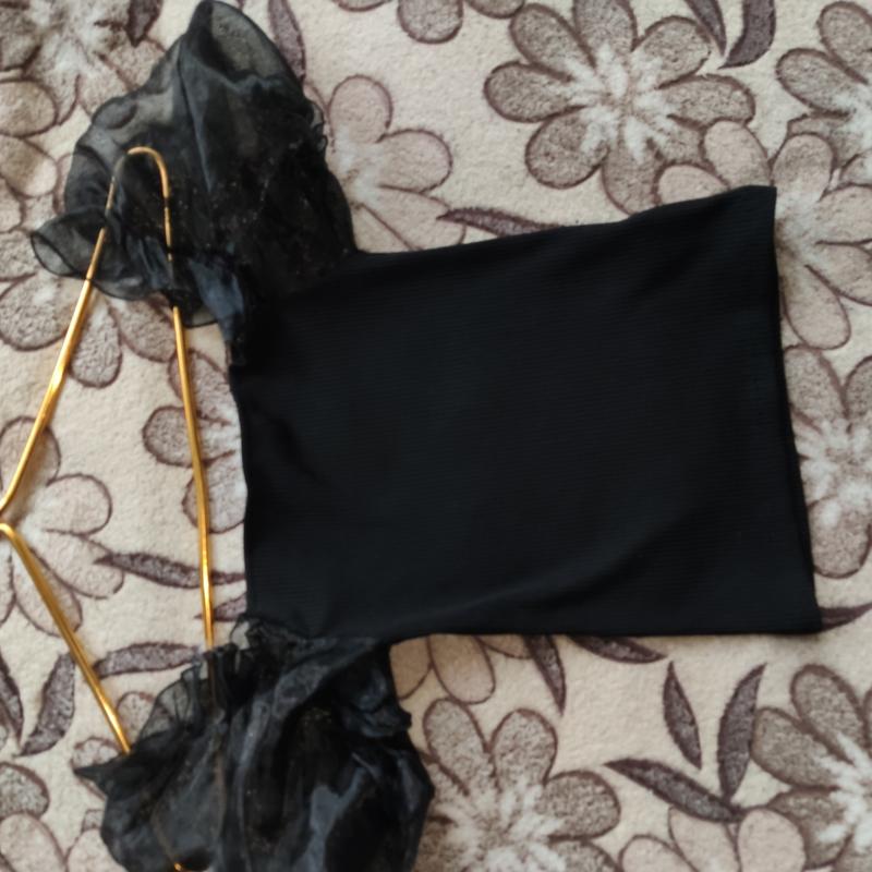 Топ в рубчик с акчентными рукавами. Хорошо тянется