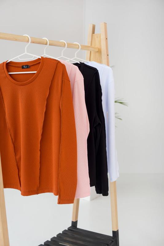 Лонгслив рубчик арт. tev. 5225 Размеры: 44-46, 48-50, 52-54, 56-58, 60-62 650 грн. 4 цвета: розовый, коричневый, черный, белый Материал: трикотаж-рубчик, хорошо тянется, приятный на ощупь, не просвечивает Трендовая вещь этого сезона со швами наружу Цена дроп/опт: 430 грн На фото: ОГ - 112, ОБ - 115, рост 175 см. Размер изделия 52-54.ске1.Не нажимайте на кнопку Купит,технические проблемы подписывайтесь..жду)