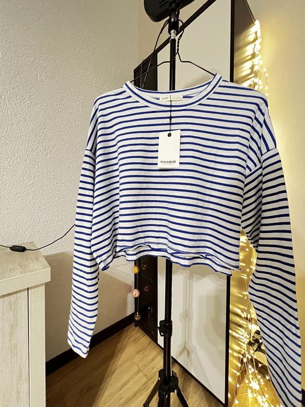 укорочений лонгслів із натуральної бавовни Pull&Bear розміри в наявності s,m.