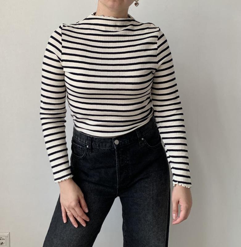 Лонгслів бежевого кольору у чорну смужку від Next Розмір Л У складі 66% катон, 33% поліестер, 1% еластан Довжина 61 см, довжина рукава 60 см, напівобхват грудей 45 см Стан ідеал