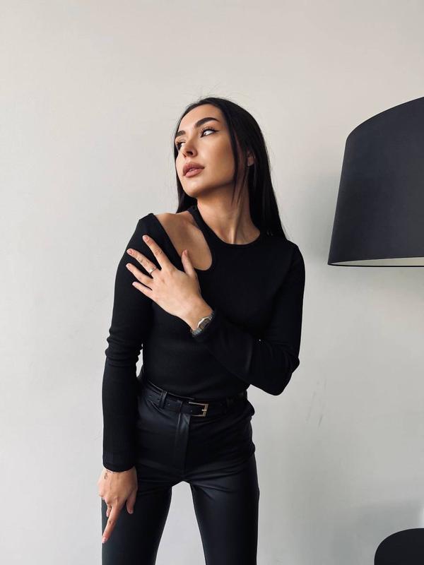 Класний лонгслів з акцентним вирізом • Розмір: універсальний (ОГ 78-93 см), довжина 53 см, рукав 59см. Напівобхват 40 см+тягнеться • Матеріал: трикотаж рубчик