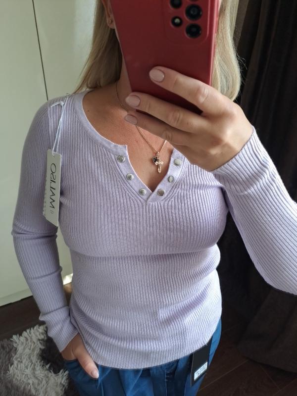 Лонгслив в рубчик нежно сиреневого цвета Размер универсальный S-L Ткань красиво тянется и очень приятная к телу Плечи 29см ПОГ 37см ПОТ 33см Рукав 58см Длина 52