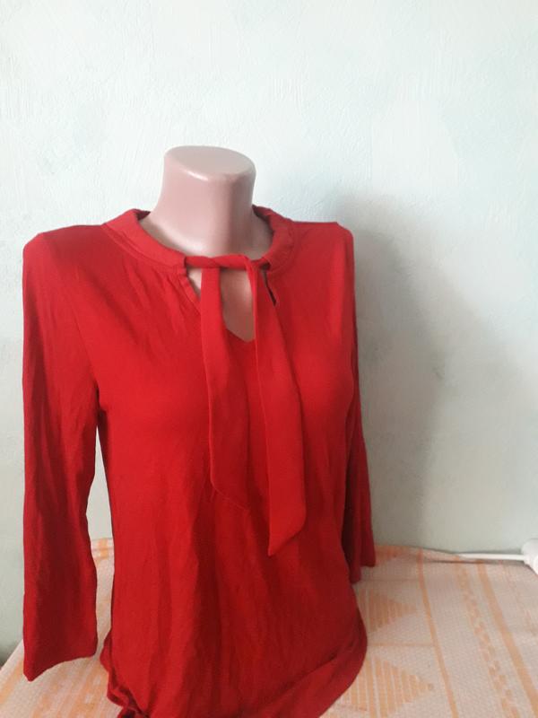 кофта лонгслив в идеальном состоянии, камера натуральный цвет не может передать, цвет насыщенный красный не тусклый, длина по спинке 62см , пог 44см., ширина плеч 36см, рукава 3/4, ткань тянется хорошо. состав 96 вискоза, 4 еластан