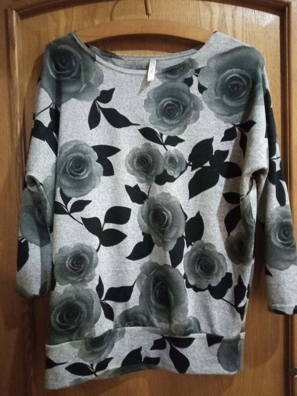 Шикарна тепла кофта в троянди..по грудях до 115 см.. оплата на карту ПриватБанка
