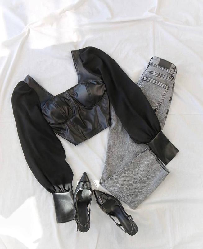 🥀Новинка🥀 Топ Код rz 061 Ткань: матовая экокожа, шифон Размеры: 42-44, 46-48 Цвет: черный 💵Цена 579 грн Встречай нашу новинку - топ, который покорит твое сердце💘 и сделает тебе любой образ. Красиво сидит и подчеркивает грудь (без чашечек). Сзади идет на молнии. Высокое качество