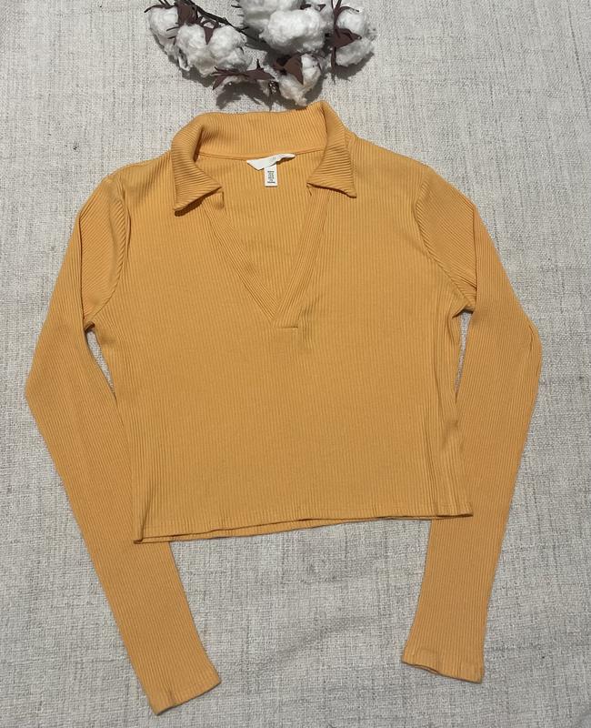 Лонгслив в рубчик,топ с длинным рукавом Приятного оранжевого цвета Красиво тянется,глубокое декольте, стильный