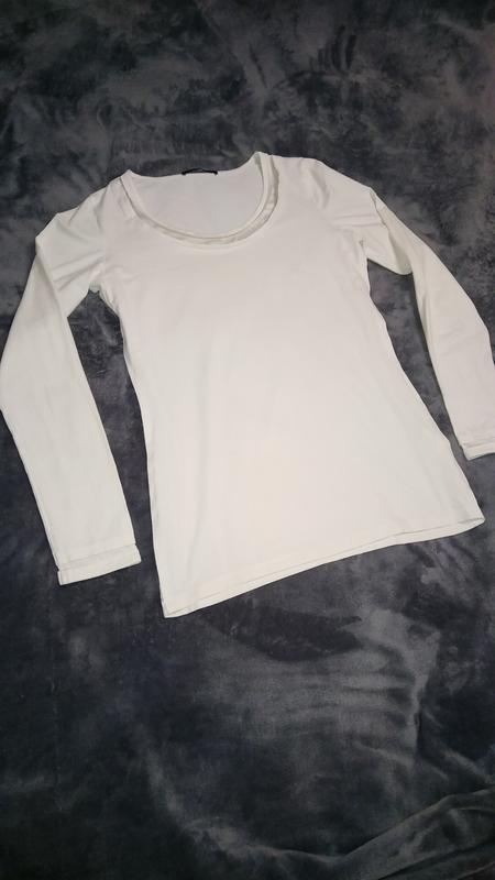 Актуальный лонгслив Hugo Boss цвета айвори, нежный на ощупь материал, шелковые вставки в хорошем состоянии. Размер S, ог 43, длж.61, длин. рукава от плеча 58.